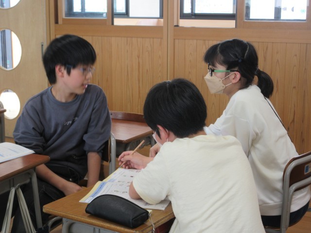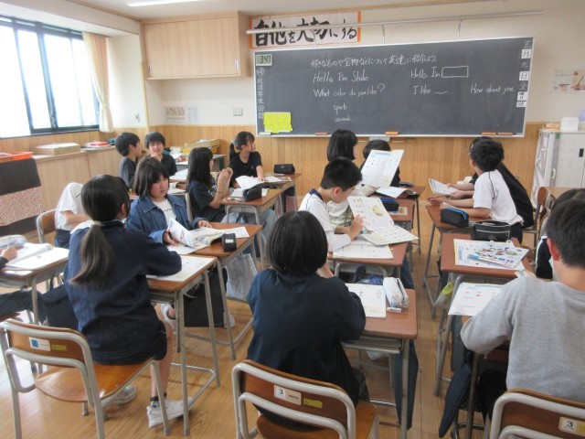 6年生の外国語の学習では、自己紹介の言い方を練習しています。自分の名前だけでなく、自分の好きなものの言い方も伝えられるように練習しました。外国語の表現にもずいぶん慣れてきた子どもたちです。