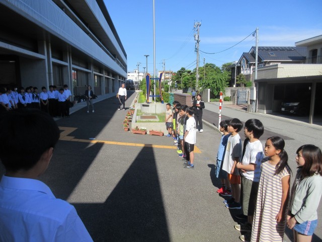 くらしづくり委員会の子どもたちは、毎日玄関前に立ち、登校する子どもたちにあいさつをしています。中学生と一緒にあいさつ運動をしたことで、これからの自分の取組にさらに意欲を高めることができました。