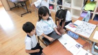 校外学習での活動内容を考える子どもたち。地図やパンフレットを見ながら、どの施設...