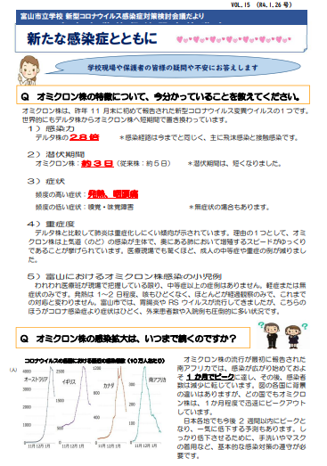 新型コロナウイルス感染症検討会だより15号が届きました。本日、お子さんを通じて...