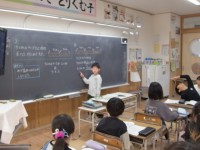 「新しい計算を考えよう」の学習に取り組んでいます。子どもたちが黒板に教材を掲示...