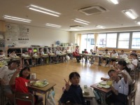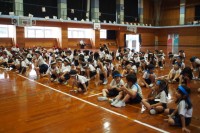 団体演技に向けて、学年で練習を行いました。音楽に合わせて楽しそうに踊っていました...
