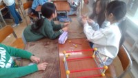 算数では、棒とボールを組み合わせて直方体や立方体を作りました。試行錯誤しながら形...