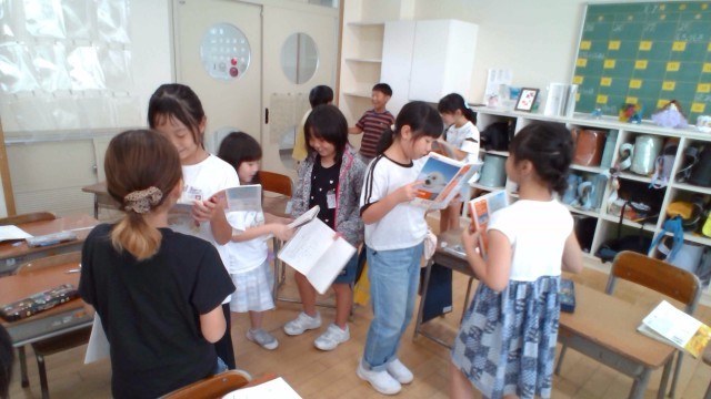 国語科「雨のうた」では、お気に入りの1行を選び、その理由を伝え合いました。友達との伝え合いを楽しんでいました。
