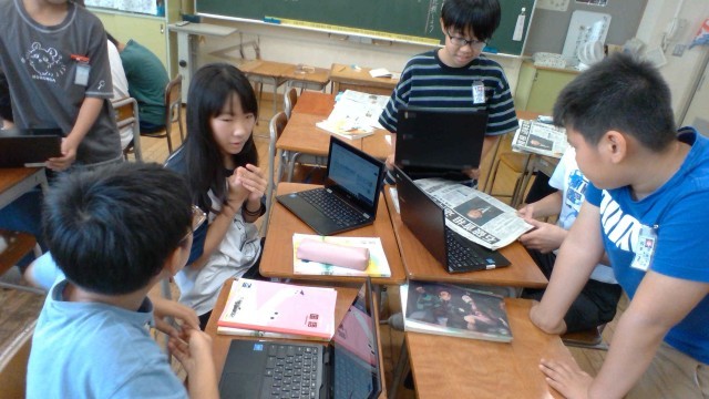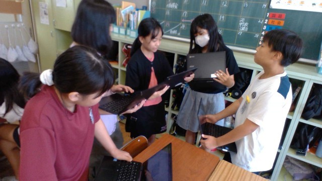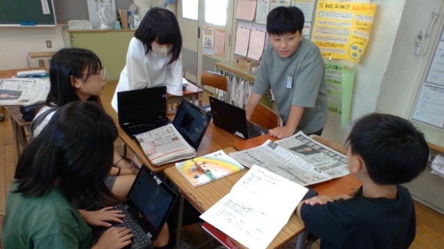 国語科では「インターネットでニュースを読もう」の学習をしています。今日はネットニュースと新聞紙との記事の書かれ方の違いを見つけ、伝え合いました。