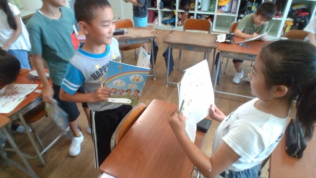今日は外国語活動の学習の時間に、「What 〇〇 do you like?」の練習をしました。友達の好みを予想して、実際に質問して答えを聞きながら楽しそうに活動していました。