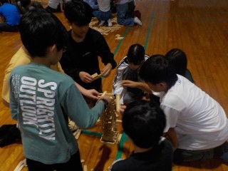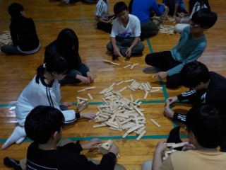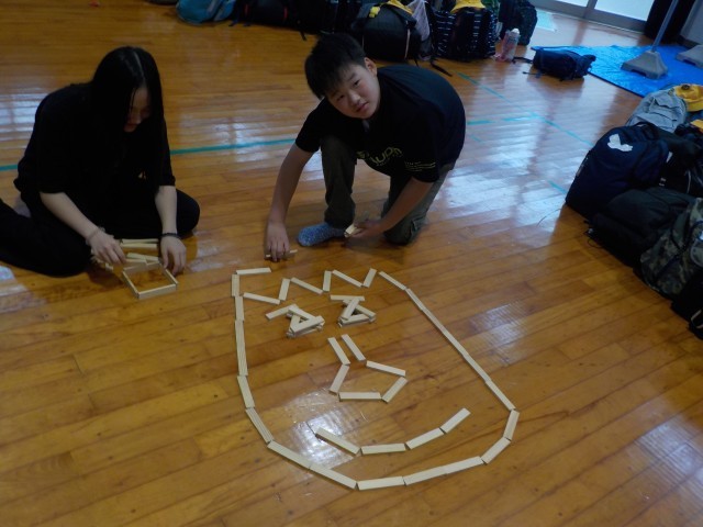 カプラに挑戦しました。仲間と声を掛け合い、どう積み立てるか考えました。作品が完成し、達成感を味わうことができました。