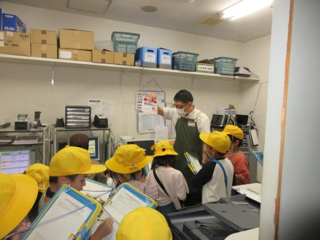 3年生の社会科ではスーパーマーケットで働く人について学習しています。買い物調べの結果、たくさんの人が利用しているスーパーマーケットに注目し、「どうしてそんなにお客さんが来るのだろう」「何か工夫をしているのかな」という疑問をもち、見学しに来た子供たち。普段見ることができないバックヤードを見せてもらったり、お店の人にたくさんインタビューしたりするなど、真剣に取り組んでいました。見学したことをもとに、これからさらに自分の課題を追究していきます。