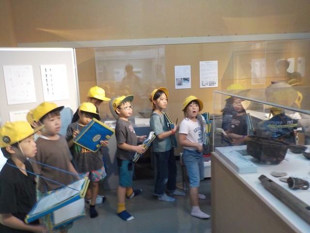 民族民芸村での1コマです。初めて見る物に興味をもって見学しました。