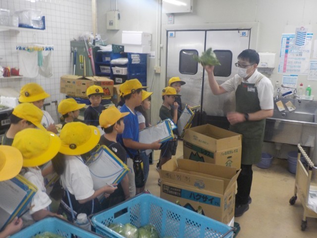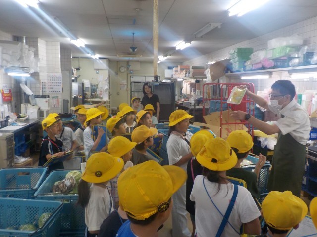 今日は、スーパーマーケット見学として「大阪屋」に行ってきました。普段は見れない開店前のお店の様子やバックヤードを見学し、店長さんからもお話を聞きました。初めて知ることが多く、真剣な表情や楽しそうな表情をしている子供たちでした。