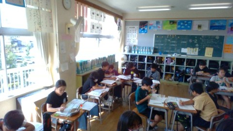 日本の食料自給率が下がっていることを知り、食料生産の課題や今後の対策について調べ学習を行っています。