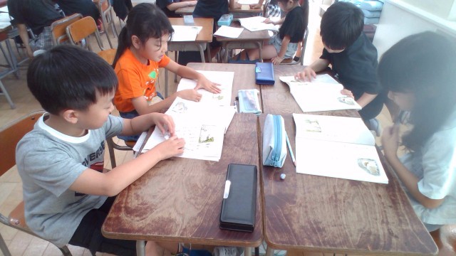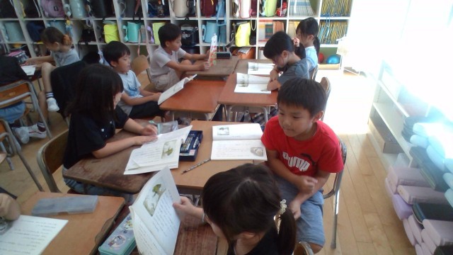 国語科では、音読を繰り返し行い、物語の内容を理解しようとしています。また、大きな声やハキハキと読むことを意識して上手に音読できるように練習しています。