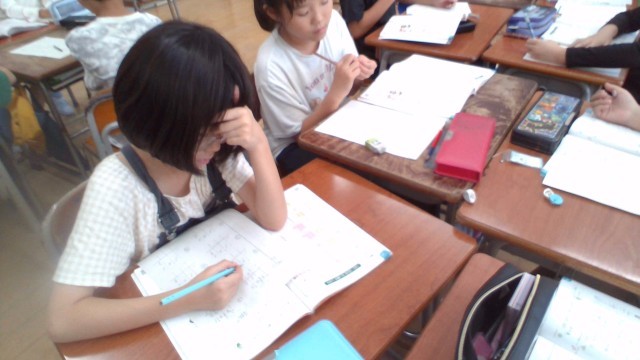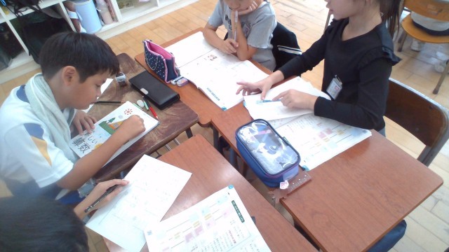 算数科では、繰り上りや繰り下がりに気を付けながら筆算をしています。分からない時は友達と一緒に考えたり、自主的に追加で問題を解こうとしたりする姿も見られます。