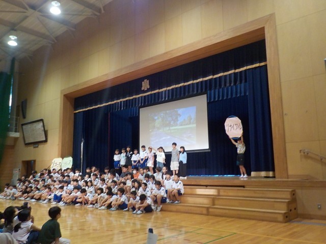 9日(木)に校内発表会を行いました。たくさんの観客の前で緊張している様子でしたが、堂々とセリフを言ったり、出番ではないときも、仲間の演技を大切にしようと静かに待ったりする姿が見られました。また、全員でセリフを言うところは気持ちをひとつに、声をそろえようとしていました。練習を始めたころに比べると、演技の面だけではなく、気持ちの面でも大きく成長したように思います。教室に戻ってからは、他の学年にメッセージカードを書きました。「1年生の劇では、自分が学習したことを思い出しながら見ることができてとても楽しかったよ。」「5年生の歌は、何度聞いても涙が出そうになるくらい感動します。」等、ひとりひとりが、気持ちを込めてメッセージをつづっていました。ほかの学年の発表から勇気をもらったと話していた子供たち。土曜日の本番が楽しみです。