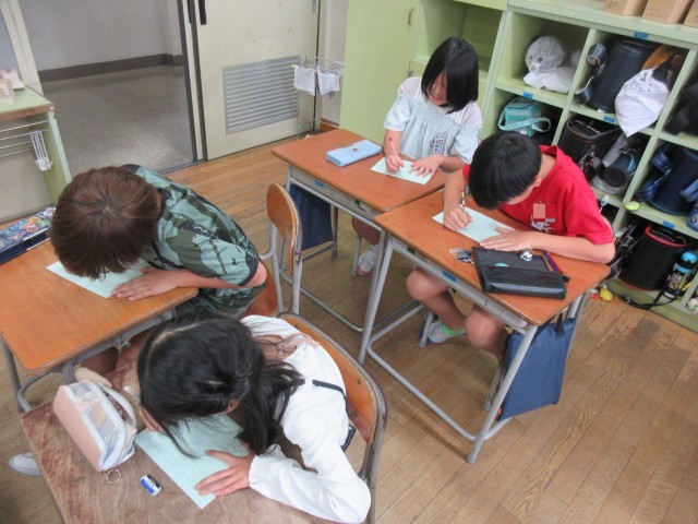 校内発表会では他の学年の発表を真剣に見ていた3年生の子供たち。たくさん刺激を受けたようです。その思いを手紙にして渡しました。他の学年からもメッセージをいただき嬉しそうに読んでいました。異学年と心の交流を通して、さらにやる気アップしている3年生です。