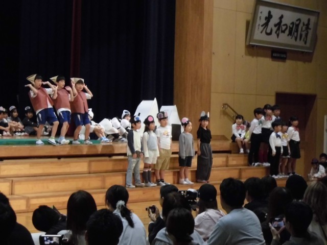 1年生、小学校ではじめての学習発表会「おむすびころりん 堀南ver.」