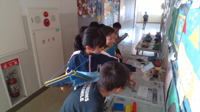 完成してきた友達の作品を鑑賞しました。色使いや釘の打ち方、作品のアイディアなど、工夫しているところを探しました。