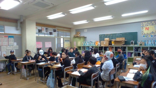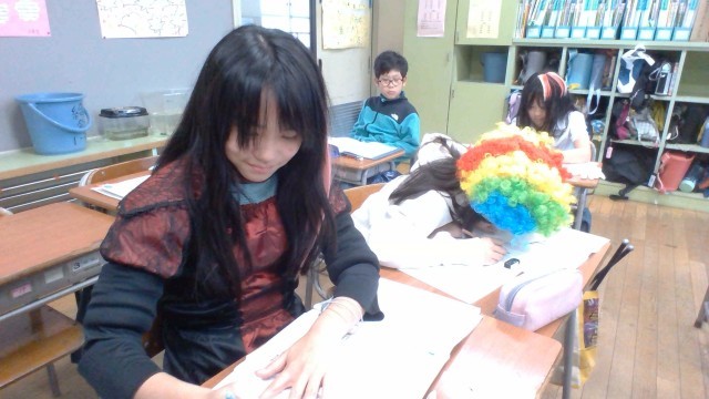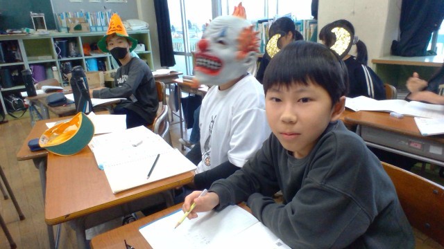 今日はハロウィンパーティーをするということで、仮装して授業を受けている子供たちもいました。
