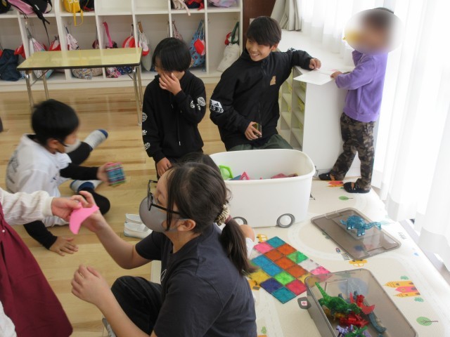 でも、3歳~5歳児クラスの子供たちとは、優しい表情で一緒に遊んでいて、学校で見せる顔と違った一面を見ることができました。