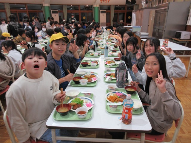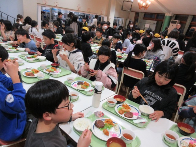12日の給食が「ハンバーグ」だったので、食べられないと悲しんでいた子供たちも、「ハンバーグだ!」と喜んでいました。