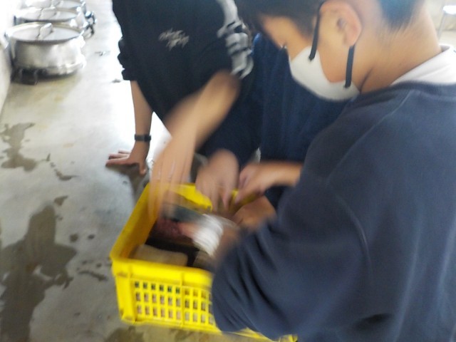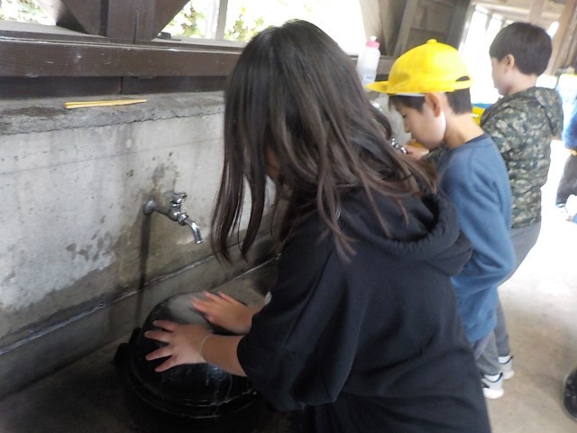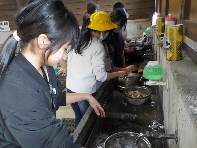 野外炊飯の片付け(5年生)