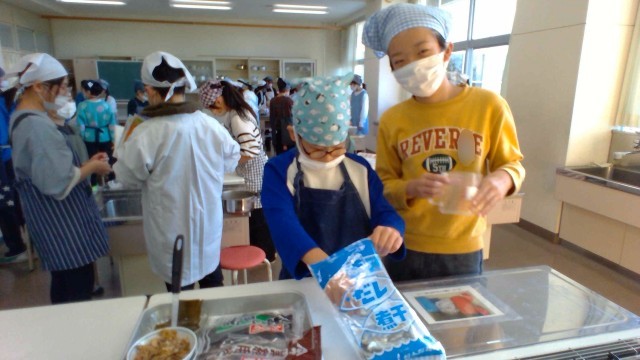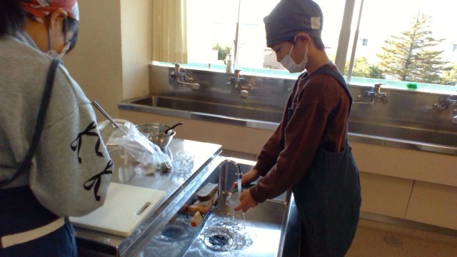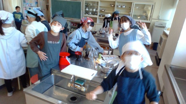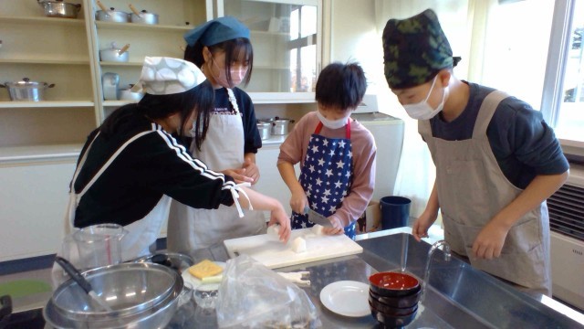 宿泊学習で、豚汁づくりをしているので、「そんなの簡単だよ」と余裕の表情でしたが、出汁の取り方や、皮むきなど、四苦八苦していました。