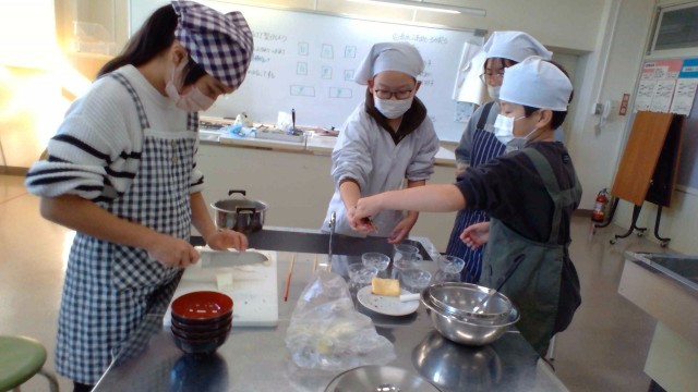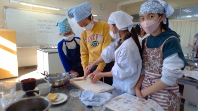 家庭科でお味噌汁を作りました。