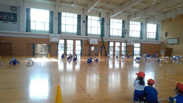 いぬ歩き、うさぎ歩き、くも歩きなど、体を使っていろいろな動きに挑戦しました。