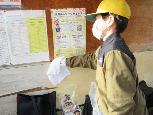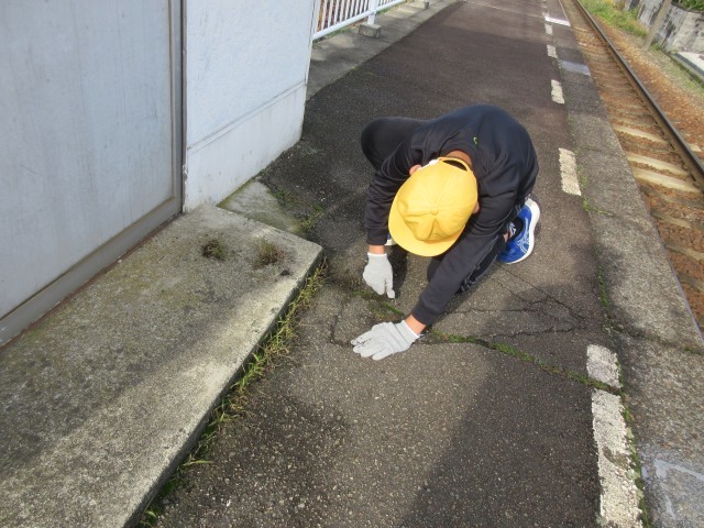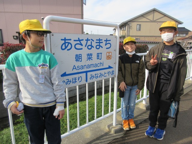 総合的な学習の時間の地域貢献活動として、朝菜町駅を清掃した子供たちです。