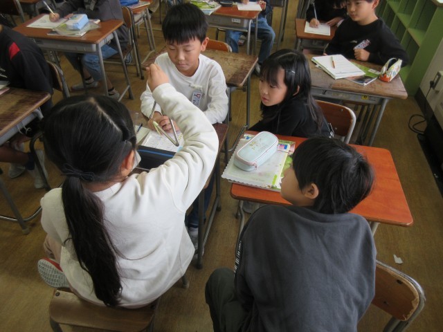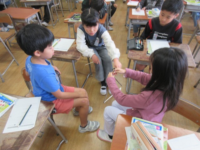 理科では音が出ているときの物の様子について学習しています。トライアングルを鳴らして、その様子を観察しました。気付いたことや知りたいことを活発に話し合っていました。