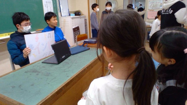 堀南ソーランやイントロクイズ、ジェスチャーゲーム、トランプを一緒に楽しんでいる様子です。6年生さん、ありがとう!