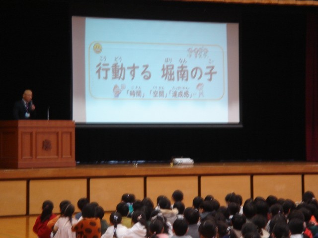 3学期始業式では、校長先生の話を落ち着いて聞いていました。校長先生からは、「行動する 堀南の子」をキーワードに、3学期は自分の目標をもって、行動して欲しいという話を聞き、3学期の学校生活に意欲をもつことができました。