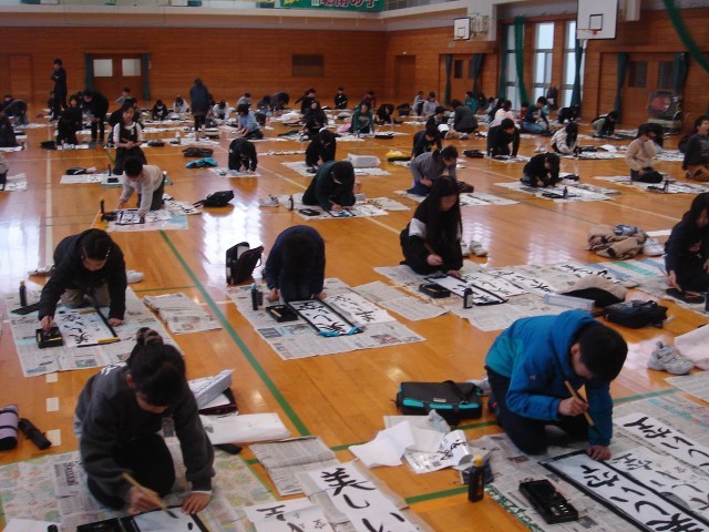 校内書き初め大会では、学年ごとの課題に真剣に取り組んでいました。冬休みに一生懸命に練習した成果が表れていて、とても素晴らしい作品が仕上がりました。