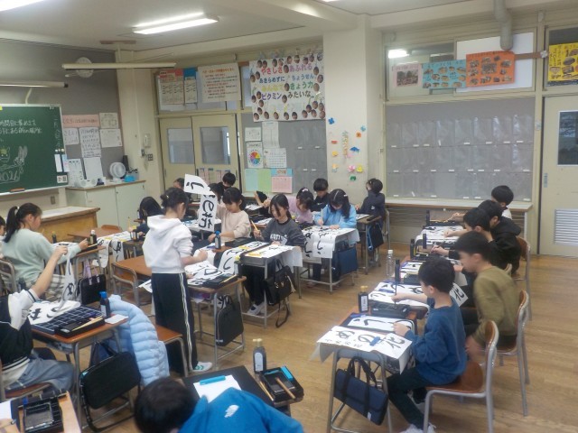 4組の書き初め大会の様子です。大変静かな雰囲気で、集中して書いていました。