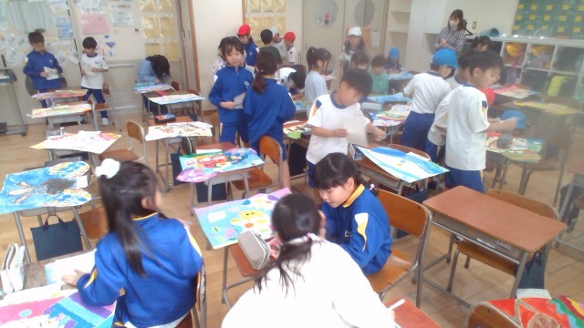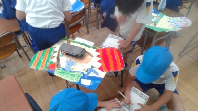 図画工作科では、不思議な卵の鑑賞会をしました。友達の作品を見て、気付いたことや感じたこと、考えたことをワークシートにまとめました。