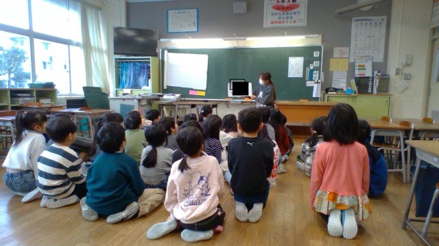 3学期はじめての読み聞かせがありました。動物たちが出てくるお話を楽しみました。