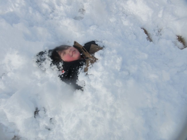 今日は、外に出て雪遊びをしました。友達とふわふわの新雪を楽しんおり、笑顔あふれる時間となりました。