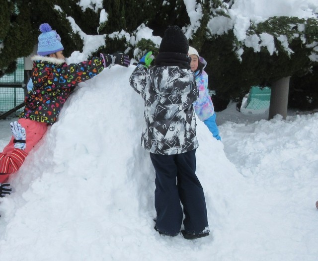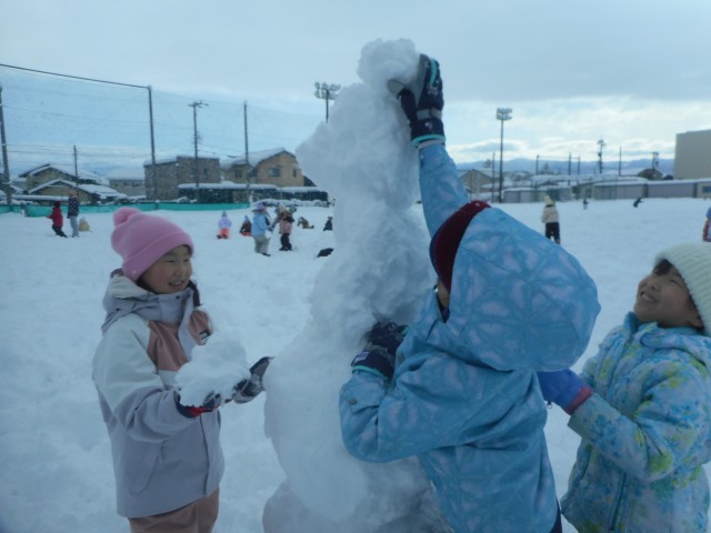 みんなで雪遊びをしました。雪だるまや、かまくらづくりを楽しむ子供たちです。