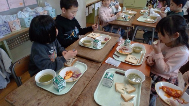 様々な教科の学びが隠れた献立を毎日楽しみにしている子供たちです。