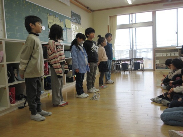 2年生になって、頑張ったことを見せ合いました。算数の九九や国語の漢字、体育の8の字跳びなど、頑張って取り組んできたことを披露しました。この日に向けて、子供たちは「どうすれば伝わるかな?」とセリフを相談し合ったり、教え合いながら練習したりと、準備の段階から協力する姿が見られました。自分自身の成長を振り返るとともに、友達の良さも再発見できる素敵な時間となりました。本日は、ありがとうございました。