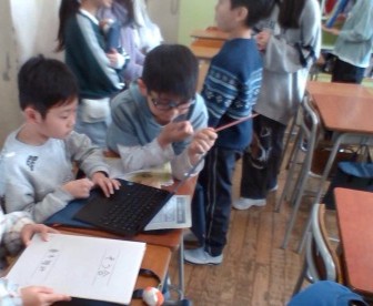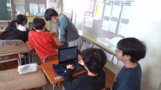 総合的な学習の時間に、自分の課題について調べてきたことをスライドにまとめています。昨日は、そのスライドを6年生に見てもらいました。さすが6年生。「こうしたら見やすくなるよ。」「数字だけだと分かりにくいから、具体的なたとえがあると分かりやすいよ。例えば…」などと、たくさんのアドバイスをもらいました。卒業まで残り僅かですが、6年生から学べることをたくさん吸収してほしいと思います。きらきらした目で、いきいきと6年生から教わる様子を見て、今は教わることの多い4年生ですが、春には頼りになる高学年になってくれるだろうと確信した1時間でした。