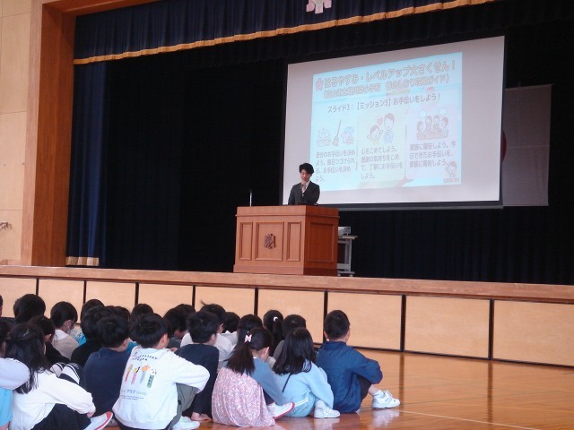 今日、修了式がありました。各クラスの代表児童が終了証を受け取りました。校長先生の話を聞き、1年間の学びを振り返り、自分の成長に気付くことができました。1年生と5年生の代表児童が3学期にがんばったことを発表しました。その後、春休みの過ごし方について、話を聞きました。