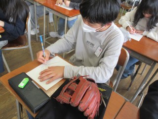 学校のスローガンについて話し合ったり、図工でデッサンをしたりしました。