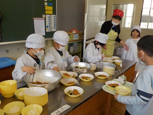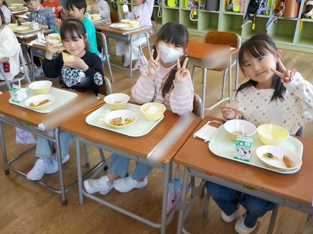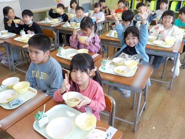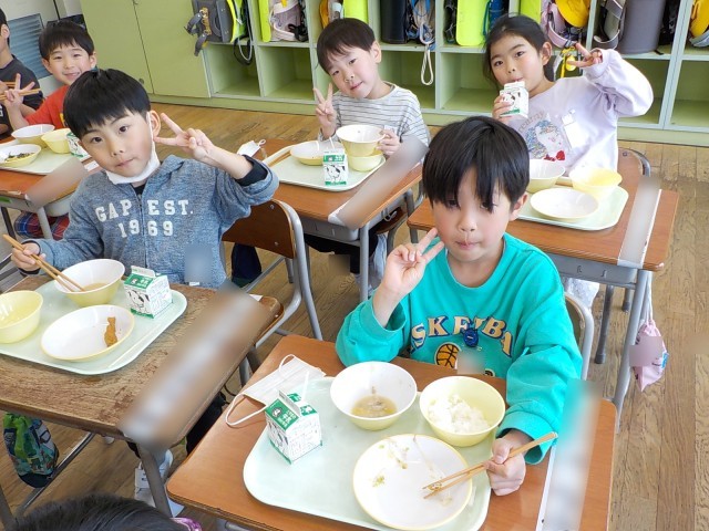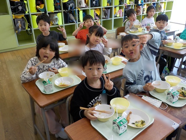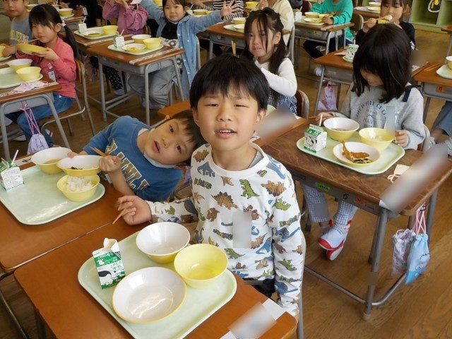 1年生が一番楽しみにしているのは、給食です。