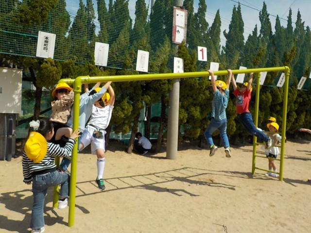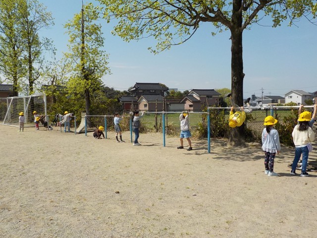 時計を見て動くことはまだ難しいので、笛の合図で教室に戻る練習をしています。
