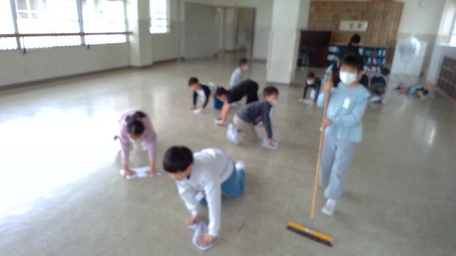 今日も掃除を頑張っています。自分たちでどこを掃除したらよいか考え、きれいにすることができました。
