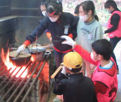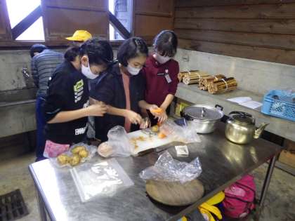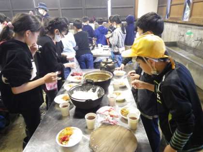 それぞれの班で協力し合って、カレーライスをつくりました。