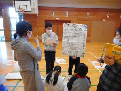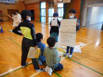 5年生は、総合的な学習の時間に、「環境プロジェクト」として、自分たちが環境問題について調べたことをポスターにまとめ、発表会を行いました。2クラス合同で行った発表会ではそれぞれの発表を聞き、自分の知らなかったことを聞いたり、友達の発表のよかったところを見付けたりして、子供たちにとって有意義な時間にできました。