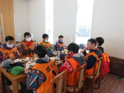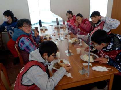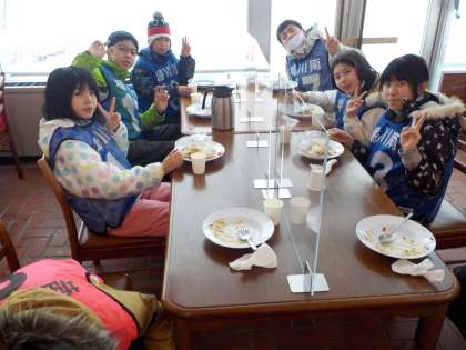 スキー学習の昼食はカレーライスでした。おいしくいただき、午後の学習もがんばりました。