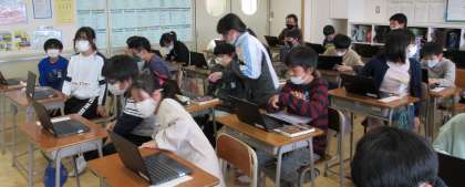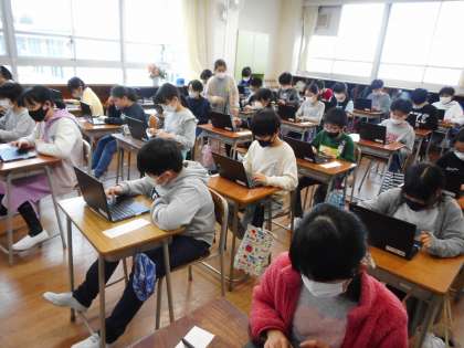 今日は、ログインができるようになりました。初めてのことに戸惑いながらも、一人一人が真剣に活動に取り組んでいます。
